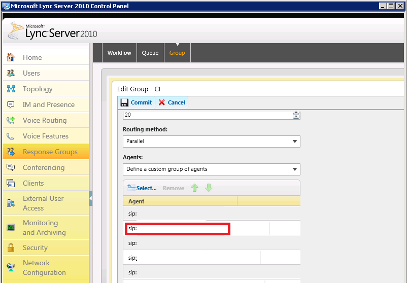 Lync Server Response Group Agent list.